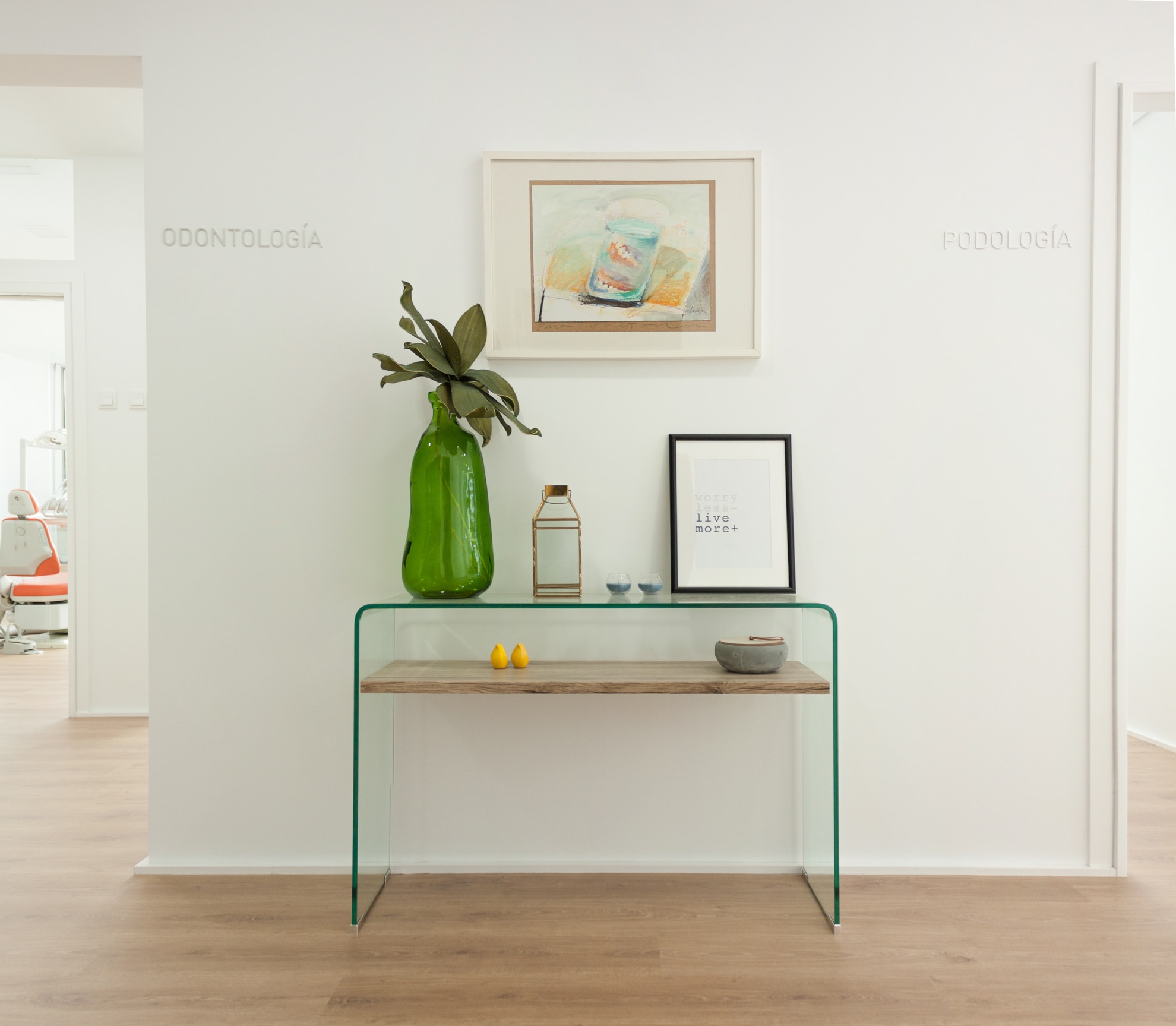 Se trata de una obra de adecuación de un local comercial existente para su uso como Centro Sanitario Polivalente (clínica dental, fisioterapia y podología). El establecimiento está situado en la planta baja de un edificio de uso residencial, dando esquina a dos calles.